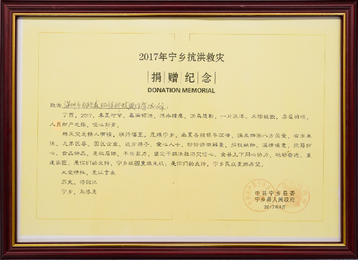 2017年8月湖南省寧鄉縣發生洪水自然災害,莊稼被毀,房屋倒塌,人員財產受損,噬心刻骨。然而天災無情人有情,危難之際,百歐森伸出援助之手,捐款捐物,溫暖情義,幫助寧鄉重建家園。